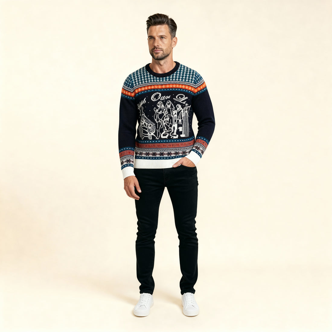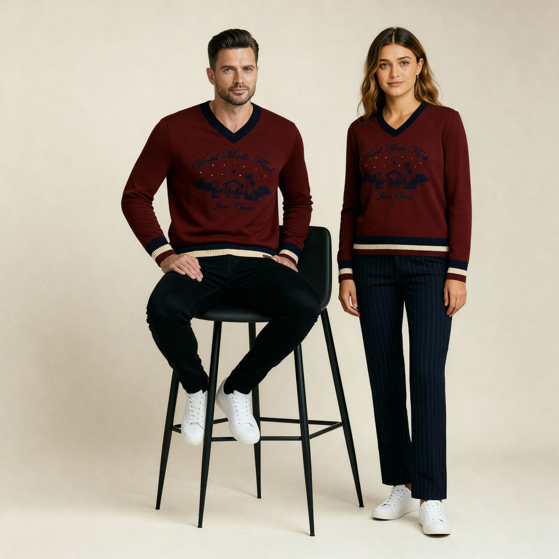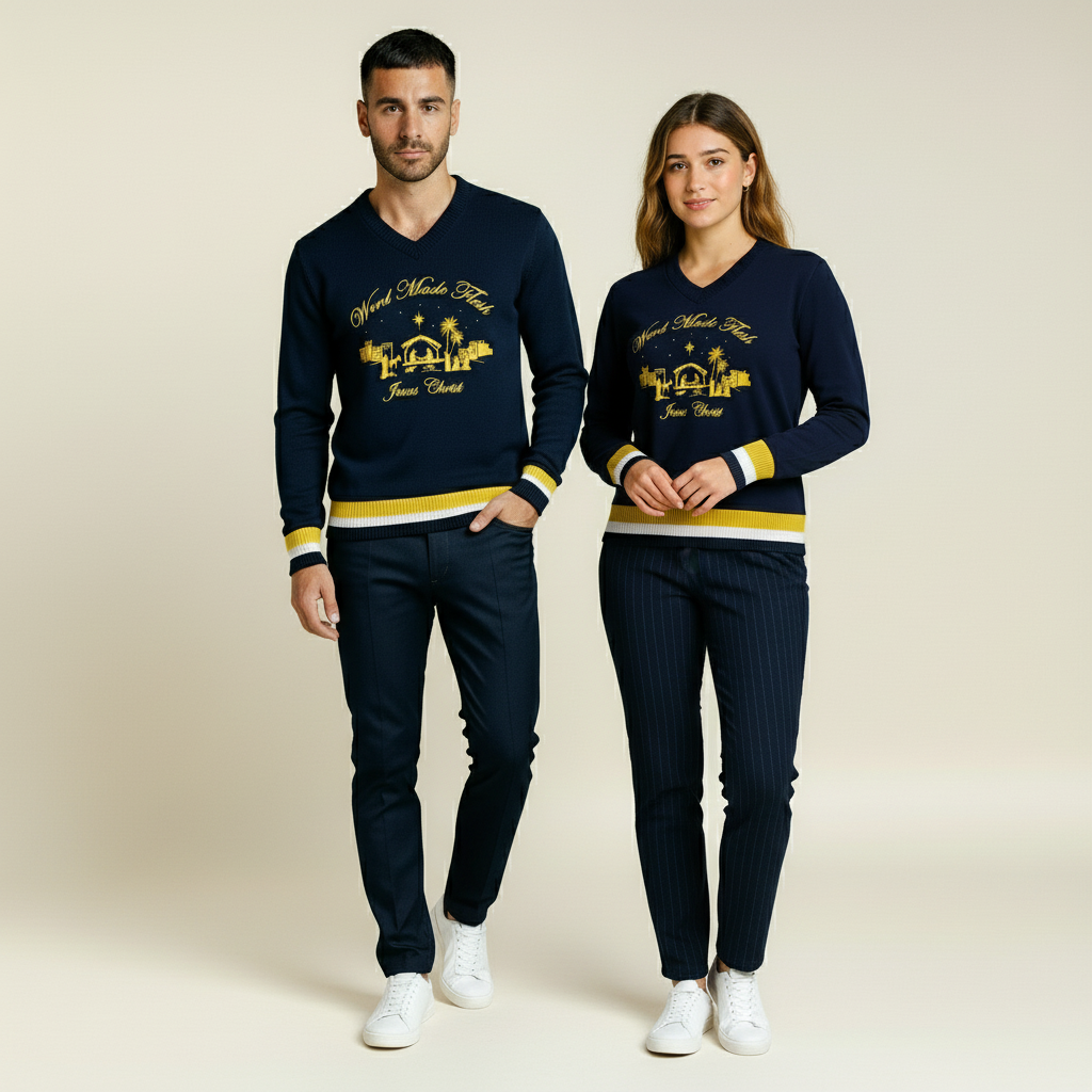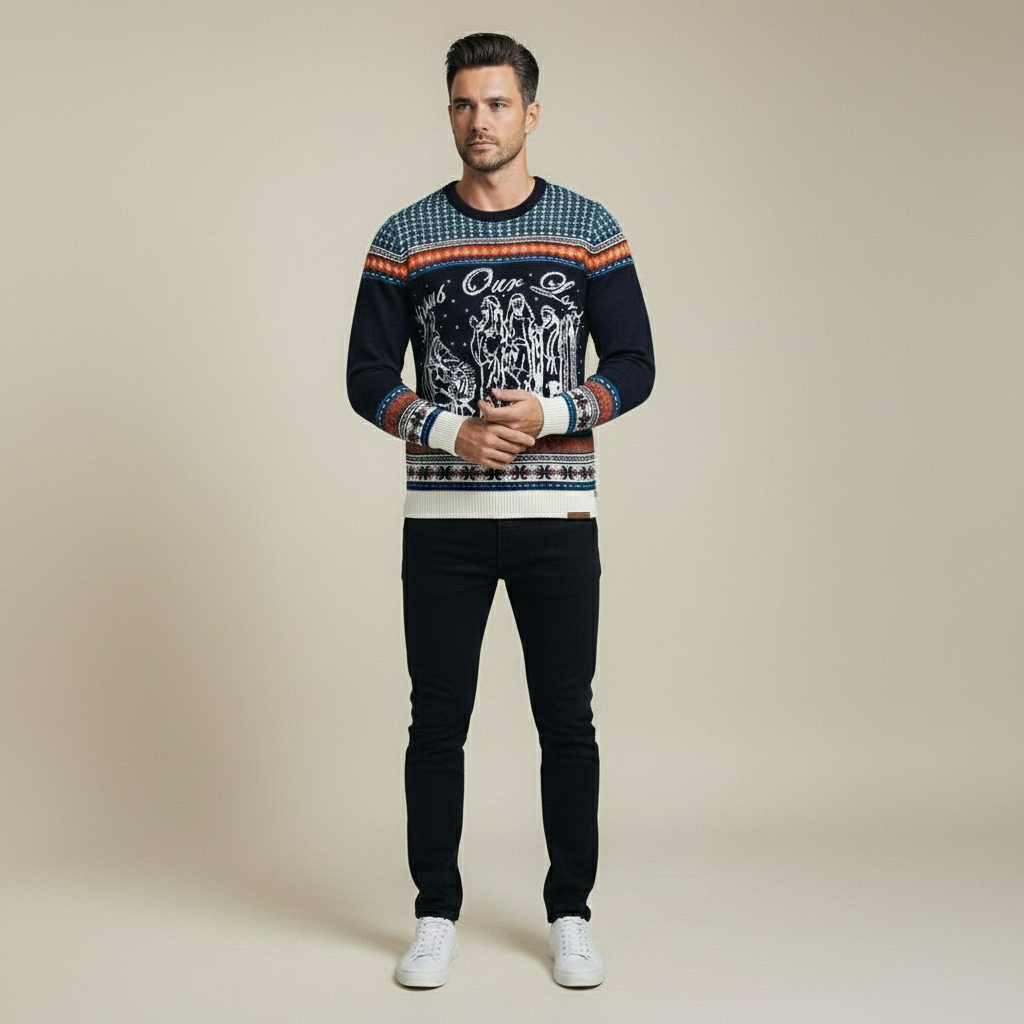 Ignite a passion for learning about Jesus Christ's birth in your children by sharing and teaching them about the nativity story on this meticulously crafted sweatshirt.