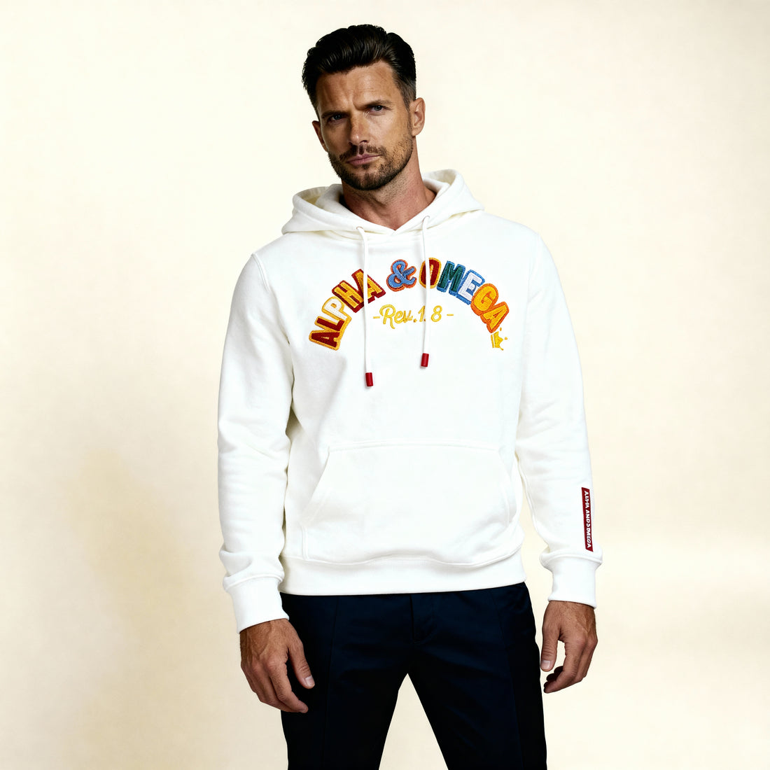 ALPHA AND OMEGA REV. 1. 8, Embroidered Hoodie